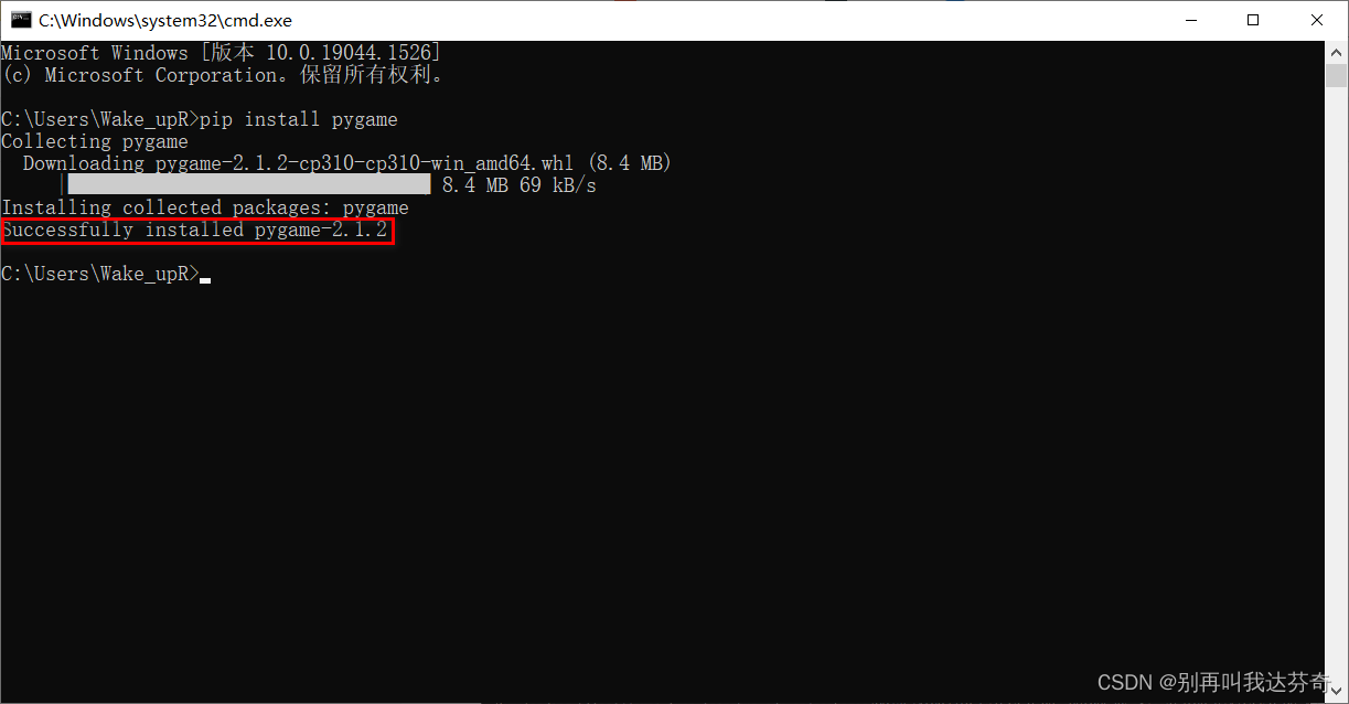 當(dāng)出現(xiàn)Successfully install ed pygame-版本號(hào)時(shí)