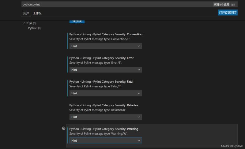 vscode在使用過程中,如果出現(xiàn)變量名或者庫名下方出現(xiàn)黃色波浪線。 可能原因是由于安裝了pylint這個庫,并沒有進行合適的設置。 我們可以在設置中查找python.pylint,直接在搜索欄搜索(找的話在擴展的python下),將設置(首選項)中defalut的Error,Warning等改成Hint,就能解決黃色波浪下劃線的問題。如圖: