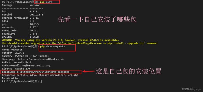 或者使用pip show packages_name(包的名字,就是你已經(jīng)安裝的包的名字)可以查看安裝的包在什么路徑下。如圖: