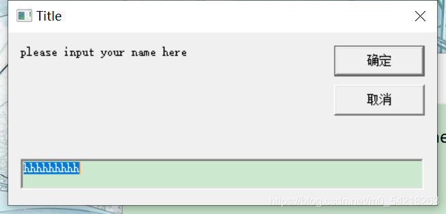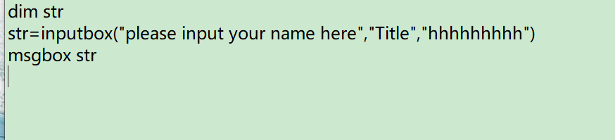 str=inputbox("please input your name here","Title","hhhhhhhhh")