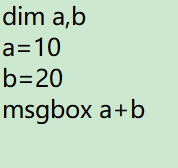 在這里的輸出方式其實(shí)我們已經(jīng)在前文中使用了很多次了,就是上述的那個(gè) msgbox 關(guān)鍵字,它的作用就是彈出一個(gè)彈框,然后顯示出你想要顯示的信息,比如:我們?cè)诘谝粋€(gè)例子中輸出的數(shù)字 30, 以及我們?cè)诘诙€(gè)例子中所顯示的字符串: “江月–哈哈哈”,總之就是由 msgbox 這個(gè)彈框進(jìn)行顯示信息,相當(dāng)于 C++ 中的 cout,也相當(dāng)于是 Python 中的 print 等等,是一個(gè)輸出,只是與其他語言的輸出方式不太一樣罷了。