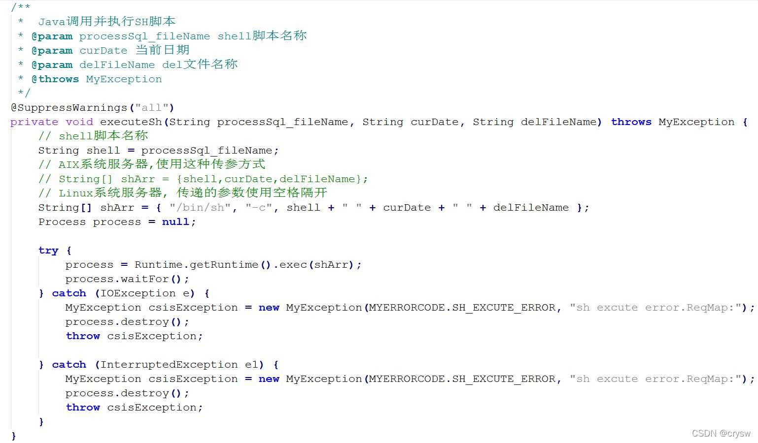 (1) 上面Java程序調(diào)用并執(zhí)行shell腳本, 需要注意服務(wù)器系統(tǒng)類型是Linux還是AIX系統(tǒng), 不然傳入的參數(shù)無(wú)法接收到.