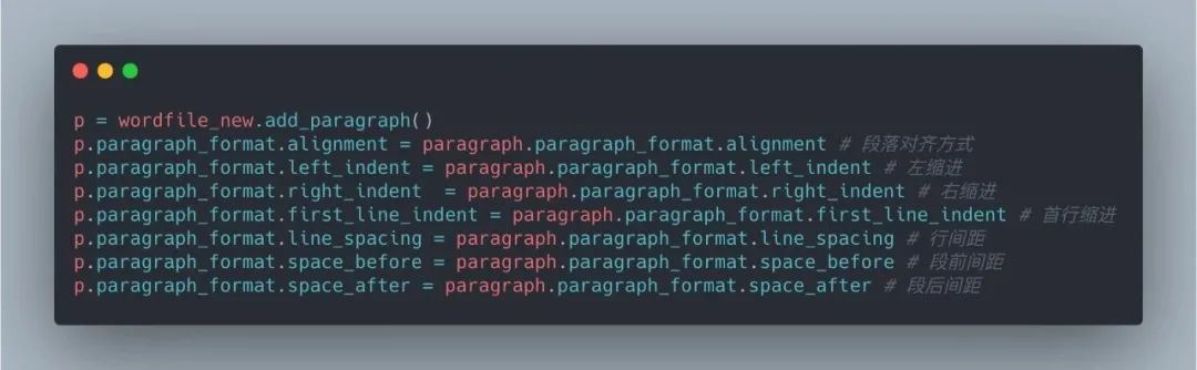 段落樣式包括對(duì)齊、縮進(jìn)、間距等等,原文檔中采取了段后縮進(jìn),標(biāo)題是居中對(duì)齊。這些設(shè)置在變量傳遞中能夠很好完成。如果原文檔中沒(méi)有設(shè)置的變量值為 None