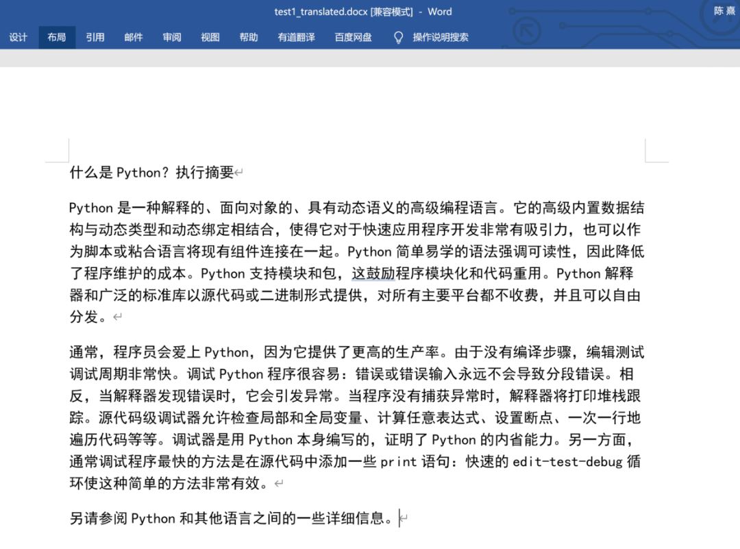 至此,所有文檔都被成功翻譯,當(dāng)然這是機(jī)器翻譯的,具體應(yīng)用時(shí)還需要對(duì)關(guān)鍵部分進(jìn)一步人工調(diào)整,不過(guò)整體來(lái)說(shuō)還是一次成功的Python辦公自動(dòng)化嘗試!