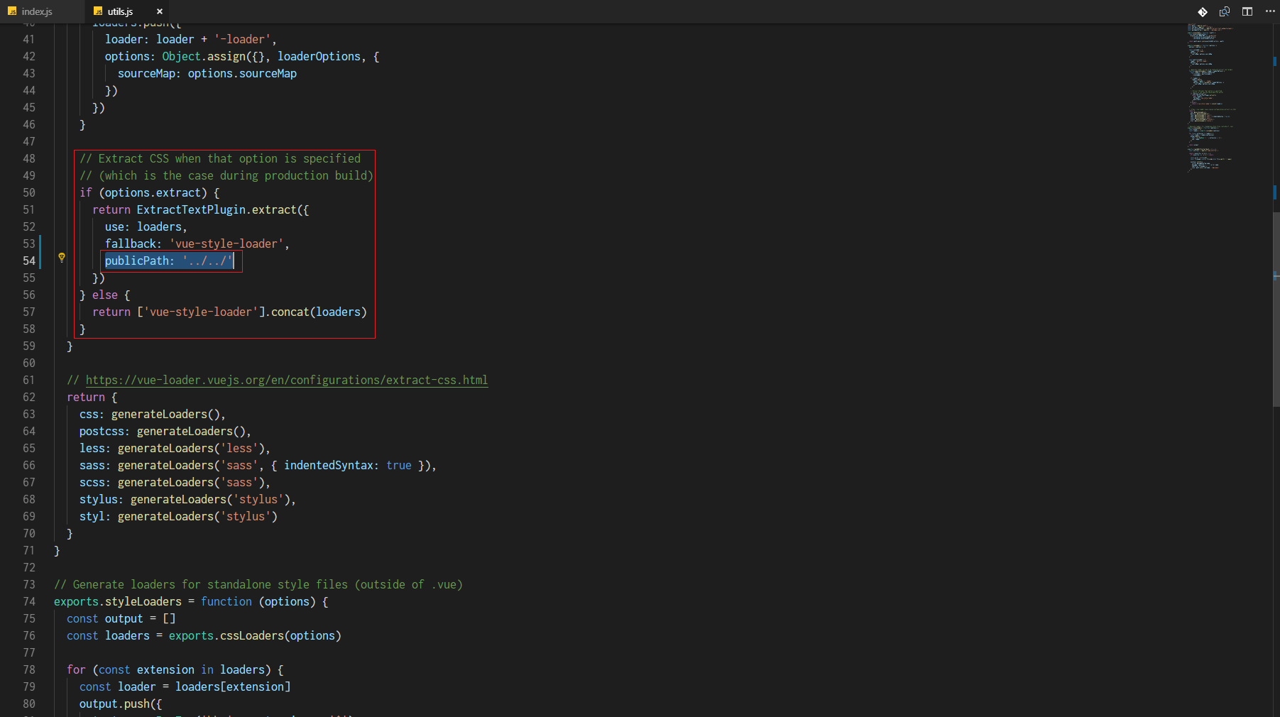 修改文件 _/build/utils.js_,在插件 ExtractTextPlugin 中添加 publicPath: '../../'