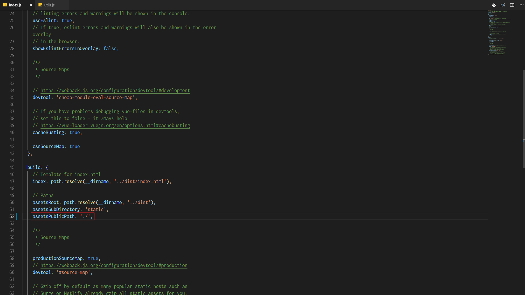 修改文件 _/config/index.js_,將 build.assetsPublicPath 屬性的值由 / 改為 ./