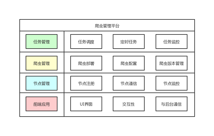 以下是一個典型的爬蟲管理平臺所涉及的模塊。