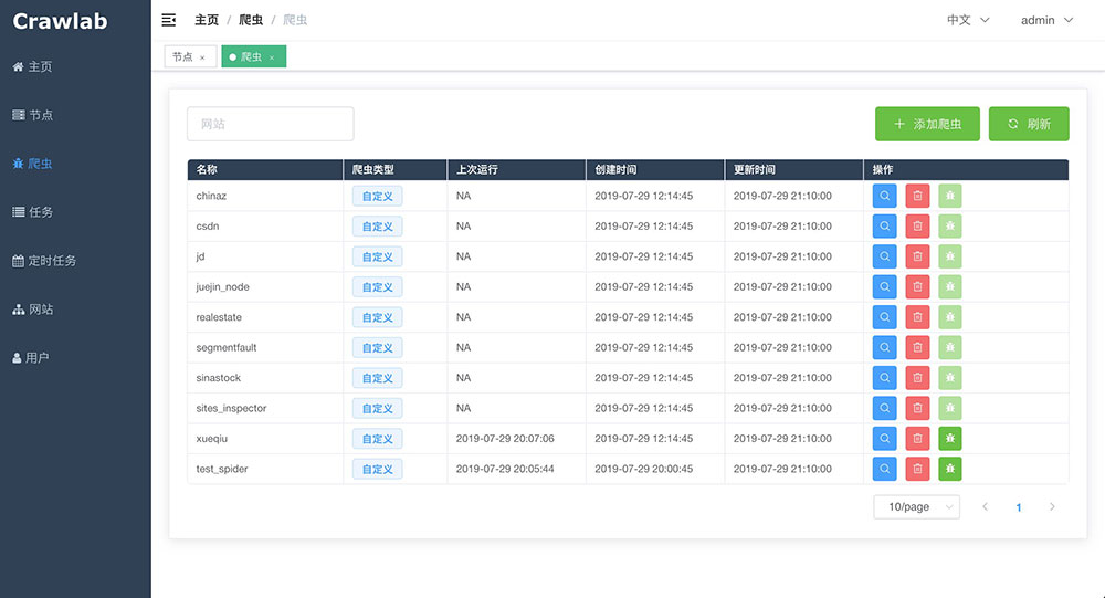 下面是 Crawlab 爬蟲列表頁面的截圖。