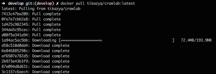 然后拉取鏡像,就會快很多了。當然,您也可以用其他鏡像源,可以網(wǎng)上去搜索一下。執(zhí)行以下命令將 Crawlab 鏡像拉取下來。