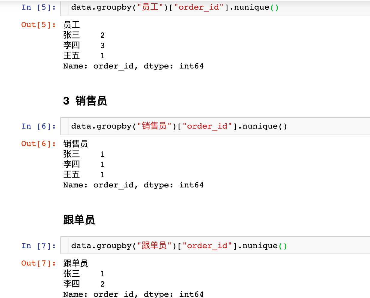 - 張三:參加了訂單號(hào)1-銷(xiāo)售員,訂單號(hào)2-跟單員、結(jié)單員,數(shù)量2