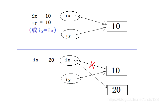 不可變的對象的特征沒有變,依然是不可變對象,變的只是創(chuàng)建了新對象,改變了變量的對象引用。參見下圖: