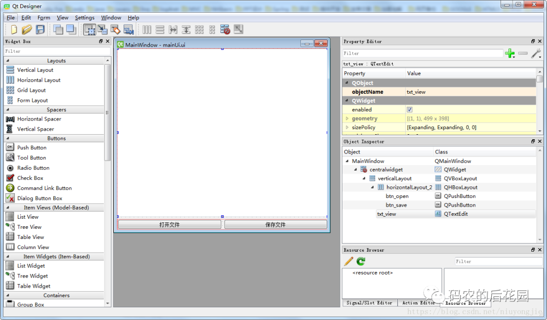 QT給我們帶來最方便的好處,就是它有一個(gè)QT Desiginer,這個(gè)設(shè)計(jì)器可以方便我們進(jìn)行頁面的布局,可以說在Tkinter里面需要一坨坨的代碼完成的頁面布局,在QT里面只要拖一拖控件就搞定了。