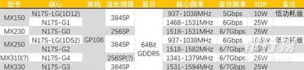 最早的一代是MX150,兩個(gè)核心一個(gè)10W一個(gè)25W,都是384SP,頻率有差別實(shí)際性能也差的明顯;
