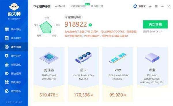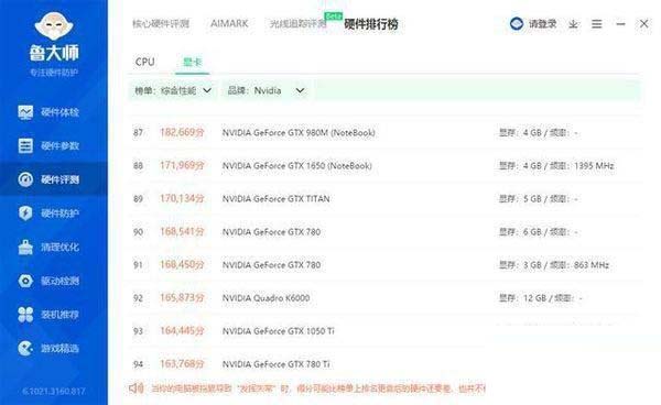 參考魯大師的分?jǐn)?shù)排行,大概看出,T600性能比GTX1050TI稍微強(qiáng)點(diǎn)。