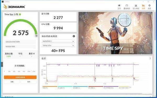 在3D MARK TIME SPY中,T600跑分是2277分。