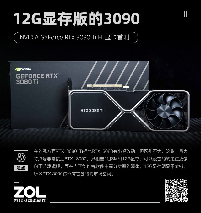 兩者最大的差距就是12GB的顯存,對(duì)于游戲用戶來(lái)講24GB確實(shí)有些浪費(fèi)了,而對(duì)于生產(chǎn)力工具來(lái)說(shuō),在4K/8K素材渲染時(shí),往往能占用12GB甚至更多,爆顯存對(duì)于軟件渲染來(lái)說(shuō)是非常致命的,輕則報(bào)錯(cuò)無(wú)法渲染,重則軟件崩潰進(jìn)程丟失。所以這兩款顯卡在細(xì)分領(lǐng)域來(lái)說(shuō)還是有所區(qū)別,RTX 3080 Ti更注重游戲。