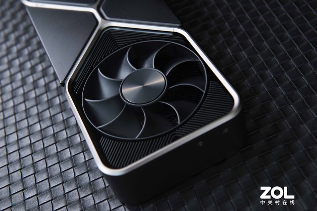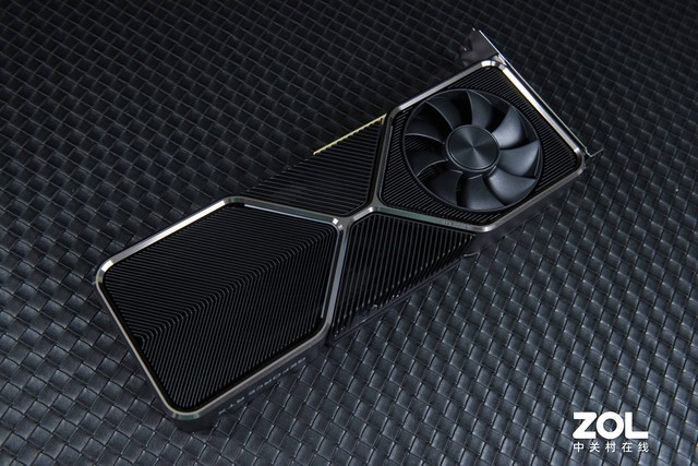 拿出顯卡后我們先來(lái)看一下正面(由于公版軸流式設(shè)計(jì),兩側(cè)均有風(fēng)扇,我們以插入機(jī)箱后的方向來(lái)區(qū)分反正面),相比GeForce RTX 3080的設(shè)計(jì)整體基本無(wú)改動(dòng),不過(guò)邊框部分的內(nèi)角從啞光改為了鏡面,這種略帶跳躍的視覺(jué)效果相比之前的設(shè)計(jì)更好看。