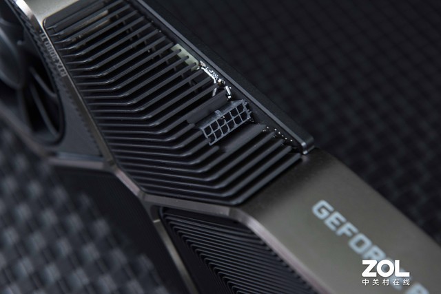 在GeForce RTX 3080 Ti顯卡的側(cè)面,可以看到單12pin的供電接口,從整體來(lái)看它比較靠近中間部位,但我們都知道公版卡采用了高度緊湊的PCB板,長(zhǎng)度也小于一般尺寸,所以其實(shí)供電接口已經(jīng)位于板子的尾部,沒(méi)有往右挪的空間了。根據(jù)NVIDIA官方說(shuō)明,GeForce RTX 3080 Ti的單卡功耗為350W,下面我們也會(huì)詳細(xì)測(cè)試。
