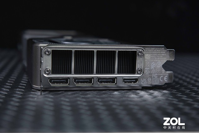GeForce RTX 3080 Ti的擋板部位顏色也和GeForce RTX 3080不同,后者采用了與散熱鰭片相同的黑色,而在新版的GeForce RTX 3080 Ti中也改為了正常的金屬色,未作特殊處理。接口方面的配置依舊為DP 1.4*3+HDMI 2.1*1的4接口設(shè)計(jì),另外由于新的HDMI 2.1協(xié)議,最高已可支持單線8K的視頻輸出。