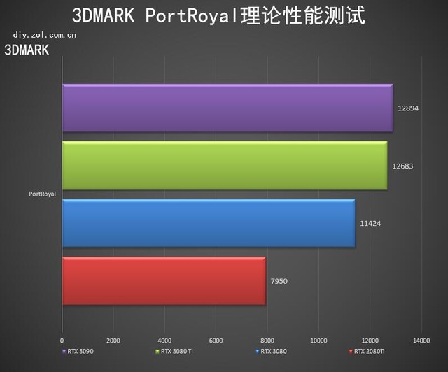 PortRoyal是3DMARK中專門(mén)針對(duì)光追性能的測(cè)試項(xiàng),在這組測(cè)試中GeForce RTX 3080 Ti的表現(xiàn)依舊緊咬GeForce RTX 3090,分?jǐn)?shù)差距不超過(guò)1%;對(duì)比GeForce RTX 3080的分?jǐn)?shù)提升約為11%;對(duì)比上一代GeForce RTX 2080 Ti的分?jǐn)?shù)提升則非常大,約為60%。