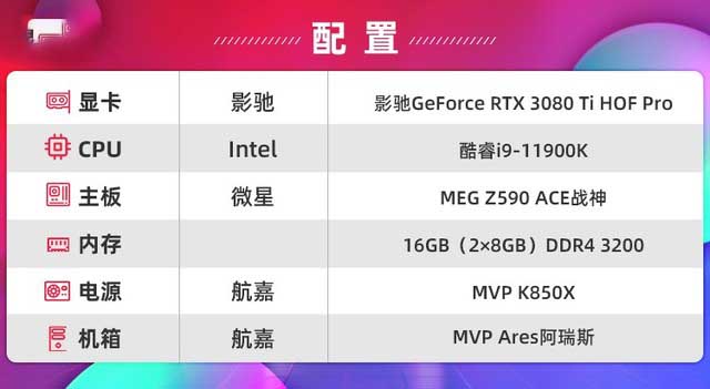 首先介紹一下測試平臺,為了保證此次評測能夠發(fā)揮影馳GeForce RTX 3080 Ti HOF Pro顯卡的最佳性能,主板和CPU采用了目前桌面旗艦級配置,具體如下: