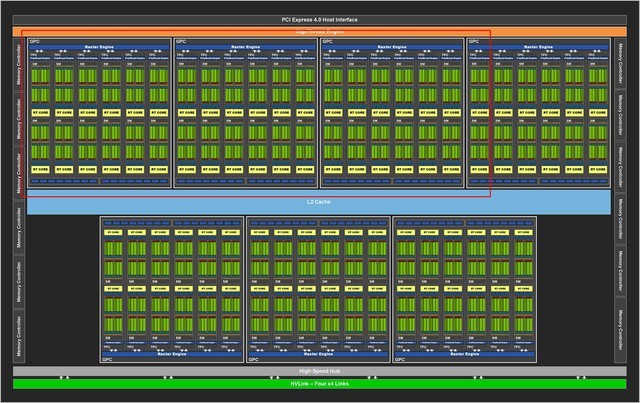 RTX 3060 Ti、RTX 3070以及RTX 3070 Ti均采用了GA104核心,不過NVIDIA官方并沒有放出架構圖,我們只能以完整的GA102來做參考。