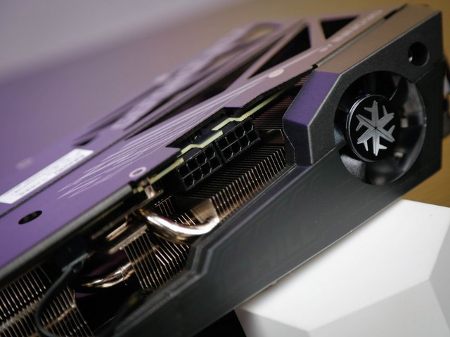 側(cè)面的小風(fēng)扇也是區(qū)別“冰龍超級(jí)版”和“冰龍版”的配置之一,它可以快速排出散熱鰭片中的熱空氣,為顯卡起到立體散熱的效果。