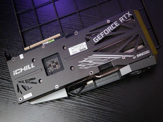 映眾GeForce RTX 3070 Ti 冰龍超級(jí)版的背板和RTX 3080 Ti的冰龍超級(jí)版有較大區(qū)別,芯片部位都采用了鏤空處理方便散熱,不過在RTX 3080 Ti冰龍超級(jí)版中,還做了規(guī)整的凹凸處理。尾部的鏤空設(shè)計(jì)可讓散熱鰭片中的熱空氣快速排出,另外相比RTX 3080 Ti的版本,在接近視頻輸出接口部位也做了鏤空處理。