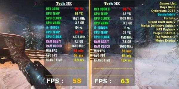 通過(guò)上面4款熱門游戲測(cè)試,不難看出,RTX3050ti比3050高了10%左右,上下一定范圍浮動(dòng)