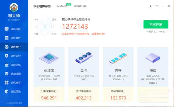 RTX3060金屬大師MAX OC顯卡,魯大師跑分40.2
