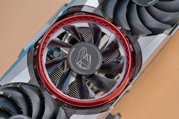 iGame RTX 3080 Ti Advanced OC 12G中間風(fēng)扇的外圍設(shè)計(jì)了一圈紅色的RGB圓環(huán),七彩虹稱之為“能量核心”。