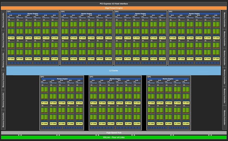 完整的GA102共有7組GPC,每組GPC有6組TPC加16組ROP單元,總計是42組TPC、共計10752個流處理器、112個ROP單元、