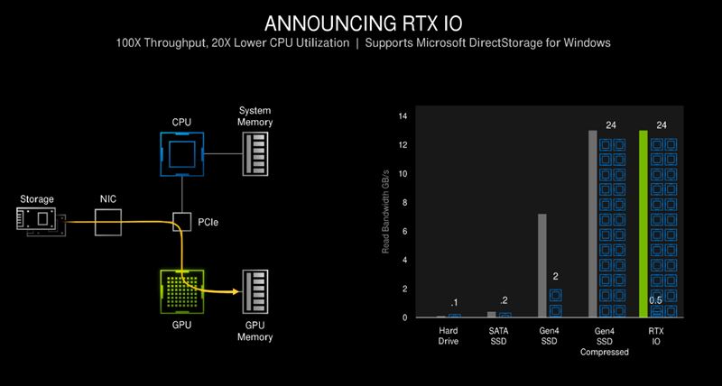 這項技術(shù)可以讓游戲在加載時完全規(guī)避CPU,直接將游戲數(shù)據(jù)包從SSD寫入到GPU的顯存中,由GPU替代CPU進行數(shù)據(jù)解包。GPU的整數(shù)/浮點性能數(shù)十倍于CPU,可以瞬間完成數(shù)據(jù)的解包工作。