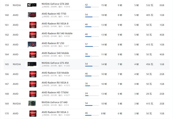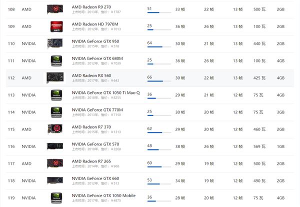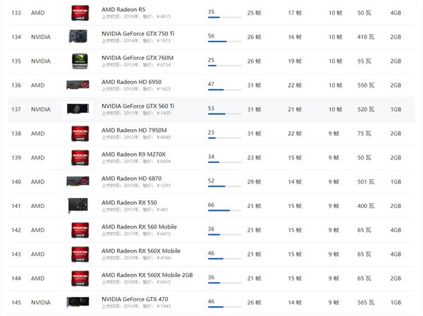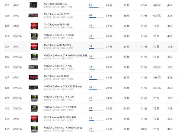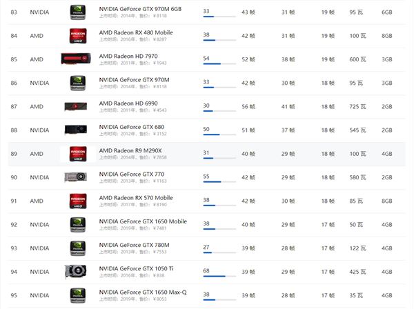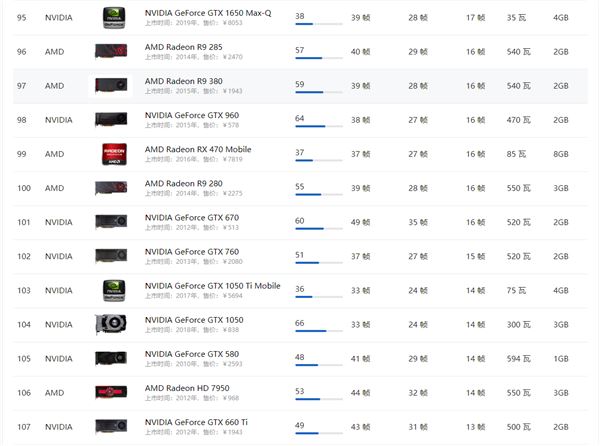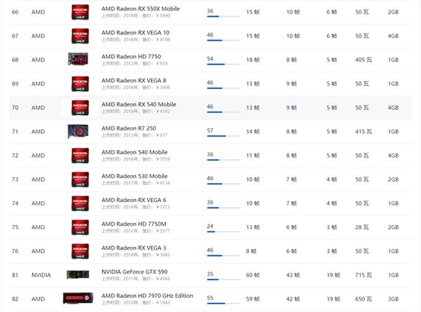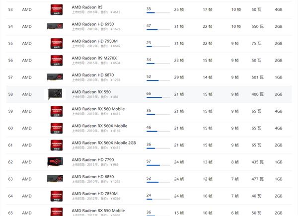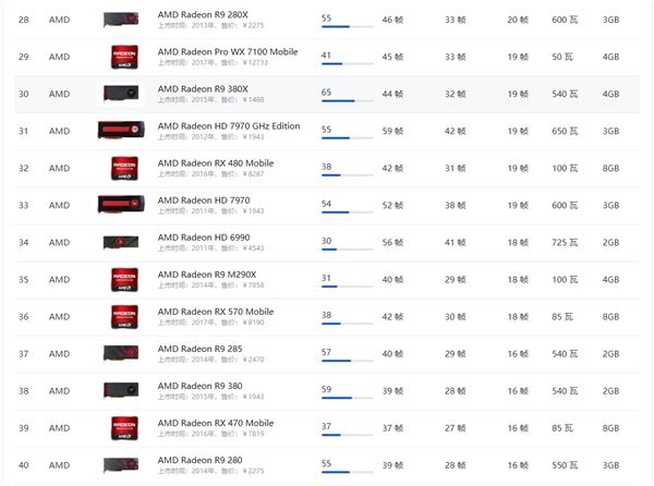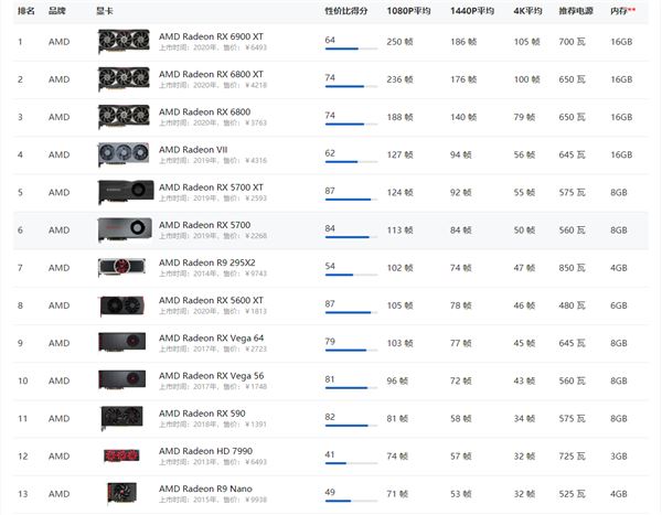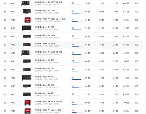 AMD顯卡天梯圖2021年5月: