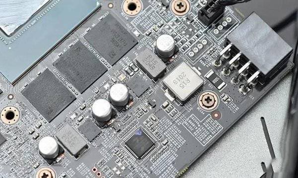 技嘉魔鷹RTX3060采用緊湊的PCB板型設(shè)計,PCB板滿滿的都是電子元件。PCB左邊為核心供電,右邊為顯存借,而中間則是GPU,以及六顆三星HC16顯存顆粒。