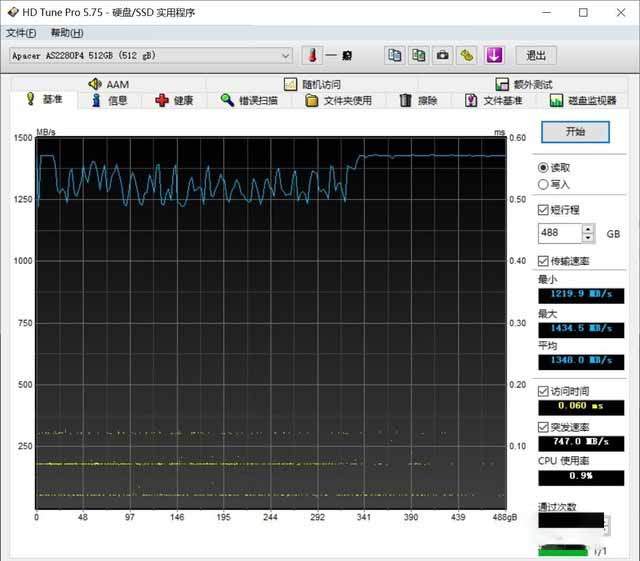 下面將通過(guò)HD Tune進(jìn)行穩(wěn)定性能測(cè)試,具體測(cè)試方法,借助HD Tune內(nèi)部的基準(zhǔn)測(cè)試,進(jìn)行全盤的數(shù)據(jù)寫入,并記錄寫入過(guò)程中的性能變化,以驗(yàn)證在長(zhǎng)久的寫入中,宇瞻AS2280P4的性能表現(xiàn)。