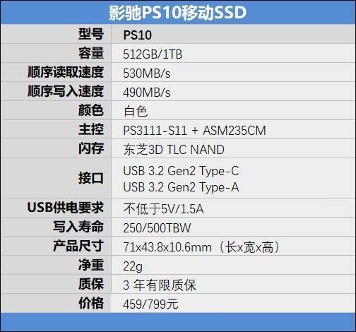 影馳PS10移動SSD有512GB、1TB兩種容量,支持USB 3.2-A和Type-C接口,可輕松連接各種筆記本電腦以及安卓和蘋果手機。