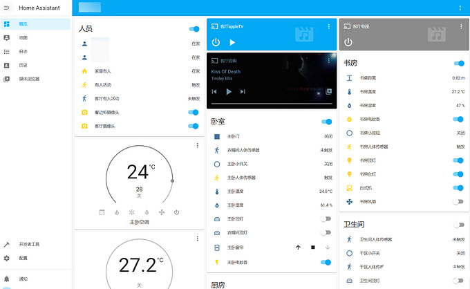 現(xiàn)在我的docker里運行了homeassistant、mqtt、esphome容器,可以把家里各種不同品牌的智能設備整合起來使用,目前在用的主要是米家的開關、燈具和傳感器,還有自己用esp8266做的傳感器和開關,索尼的電視,SONOS音箱,博聯(lián)的智能開關和紅外遙控器,這些設備都通過homeassistant這一開源平臺整合起來使用,還可以整體橋接到HomeKit上,每個家庭成員都可以使用,還可以充分利用siri的功能。