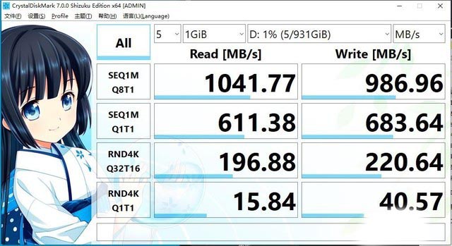 在CrystalDiskMark7.0測(cè)試中,我們可以看到三星T7移動(dòng)固態(tài)硬盤(pán)最大連續(xù)讀取速度達(dá)到了驚人的1041MB/S,最大連續(xù)寫(xiě)入也達(dá)到了986MB/S,接近1041MB/S的性能。這樣的讀寫(xiě)性能,在移動(dòng)固態(tài)硬盤(pán)行業(yè),可以說(shuō)穩(wěn)坐第一梯隊(duì)的寶座,能夠滿足當(dāng)下眾多用戶的強(qiáng)需求。