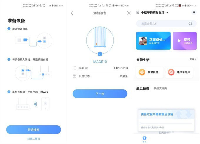 手機(jī)端在首次使用還是要連接一下,手機(jī)連接到NAS所接入的路由器中,在圖二中看到設(shè)備狀態(tài)為未激活則沒有問題,否則抓緊去聯(lián)系客服吧。在圖三中可以看到整個(gè)主頁面,界面相對(duì)簡(jiǎn)潔,功能比較豐富。