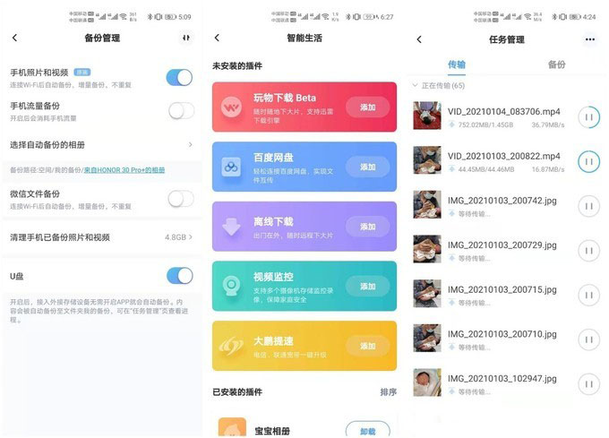 選擇NAS不安裝插件就和沒買一樣,這句話說得是對(duì)的,因此在??荡鎯?chǔ)MAGE 10中內(nèi)置了萬物下載、百度網(wǎng)盤以及大鵬提速等豐富的插件,在登陸了百度網(wǎng)盤賬號(hào)后可以下載保存在百度云中的各種資源。