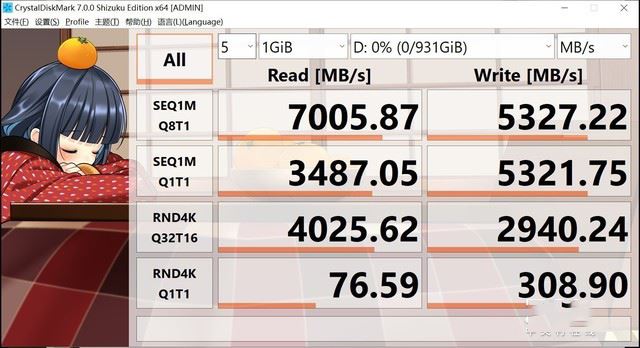 通過(guò)CrystalDiskMark測(cè)試成績(jī)我們可以看到,WD_BLACK SN850 NVMe1TB SSD的順序讀取速度讀為7005.87MB/s,順序?qū)懭胨俣葹?327.22MB/s,這樣的成績(jī)可以用當(dāng)下巔峰來(lái)形容。
