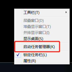 1、鼠標右擊任務(wù)欄,點擊【啟用任務(wù)管理器】