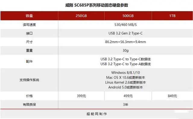 更重要的是威剛SC685P的性價比在同類中是相當(dāng)突出的,它的250GB版本售價僅399元,500B的版本499元,而1TB的版本則是849元,目前已經(jīng)在京東上架,其實(shí)同價位有不少同容量的品牌競品,不過呢他們基本都是使用USB 3.2 Gen 1接口,所以SSD的速度比威剛SC685P要差些,畢竟5Gbps的接口帶寬還沒SATA 6Gbps的高。
