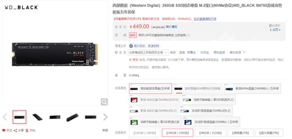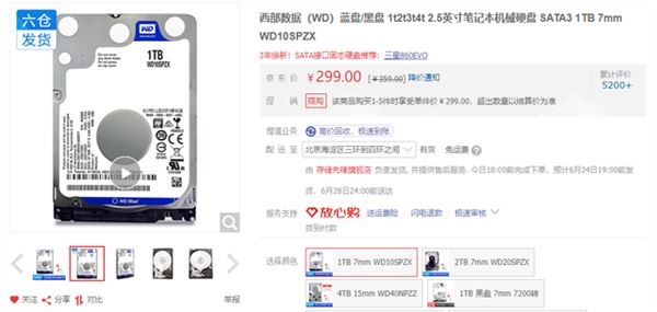 在京東商城上面,我們以西部數(shù)據(jù)為例,1TB7mm制式的藍(lán)盤零售價(jià)格在299元。而西部數(shù)據(jù)m.2制式的固態(tài)硬盤449元,從單一成本造價(jià)方面,顯然我們選擇256GB固態(tài)硬盤的性價(jià)比更高。