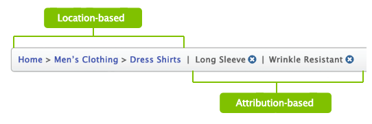 這類(lèi)基于屬性的面包屑常見(jiàn)于電子商務(wù)類(lèi)網(wǎng)站,產(chǎn)品常?;陬?lèi)別和屬性而組織到不同的子目錄中,基于屬性的分類(lèi)讓用戶更容易理解產(chǎn)品和產(chǎn)品之間的關(guān)系,提供了更多不同的瀏覽路徑。