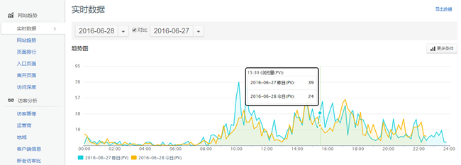 我們可以較為直觀的看到網(wǎng)站訪客趨勢圖,可以看到網(wǎng)站的訪客高峰和低谷時間段,然后每天和每周進行對比。