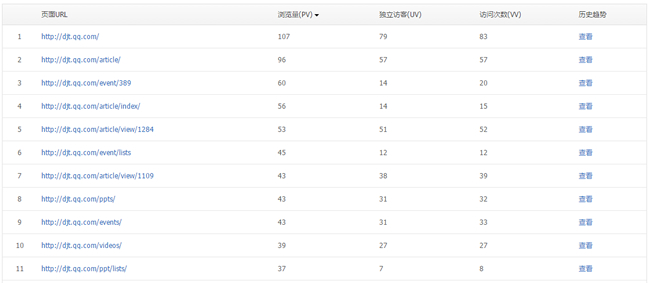 我們可以通過騰訊分析工具統(tǒng)計到訪客進入網(wǎng)站頁面的信息,具體到哪個頁面較多,也可以對比歷史數(shù)據(jù)。