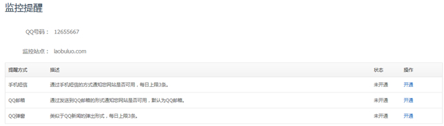可以通過設(shè)置手機短信、QQ郵箱、QQ彈窗來給如果網(wǎng)站有故障,可以提醒到我們。