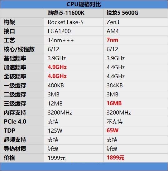 銳龍5-5600G和酷睿i5-11600K區(qū)別對比: